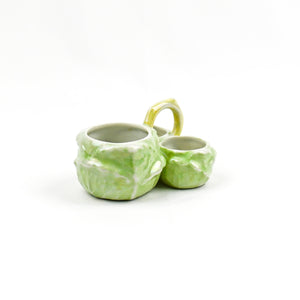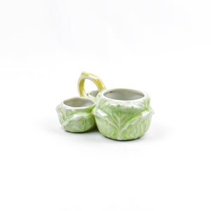 Discover the charm of this delightful Chinabone condiment pot in the shape of a cabbage. Crafted with care and made in France, it’s the perfect addition to your summer table, adding a touch of whimsy and elegance. In very good vintage condition, it serves as a mustard, salt, and pepper set that not only enhances your dining experience but also brings a unique sense of nostalgia and style.