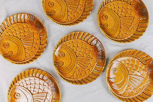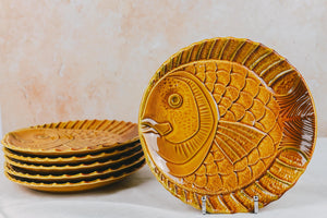 The unique fish shape of this relief plate adds a touch of whimsy and character to your table setting. Its intricate design showcases the artistry that Sarreguemines is renowned for, with meticulous attention to detail evident in every curve and contour. The natural tones evoke a sense of harmony with the environment, allowing this piece to seamlessly blend into any decor style. Whether used as a decorative accent, a deep plate for culinary delights, or a conversation starter, this plate embodies the essence of timeless beauty.