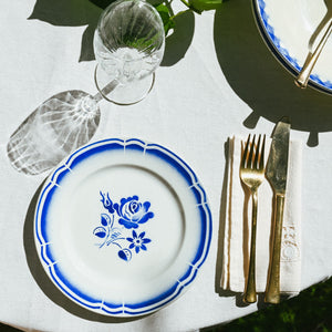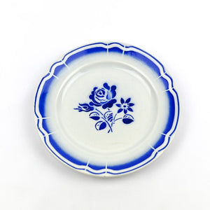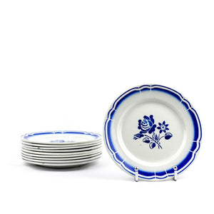 Enhance your dinning experience with this set of 10 exquisite floral dessert plates from Digoin, originating in Serreguemines, France. Each plate features a delicate blue floral pattern that captures the essence of elegance. Elevate your table setting with this charming ensemble, crafted with care and artistry to bring a touch of timeless beauty to your culinary delights.