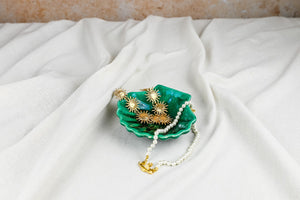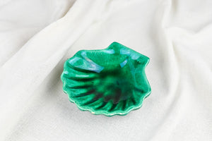 Introducing the Green Majolica Shell Platter, a captivating jewelry plate inspired by the artistic traditions of Vallauris, meticulously crafted in France. This exquisite piece showcases a vibrant green hue and intricate majolica design, making it a unique and stylish addition to your collection. Elevate your decor with this Made in France masterpiece that seamlessly blends elegance and craftsmanship.