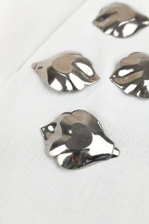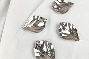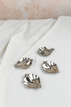 Elevate your tabletop with this charming set of four leaf/shell-shaped silver table decor pieces. Versatile in purpose, they make a stylish addition to your aperitivo setup or serve as unique individual table ashtrays. The intricate design adds a touch of elegance to any setting, making them both functional and visually appealing. Embrace the sophistication and versatility of this silver set, enhancing your dining experience with a hint of artistic flair.