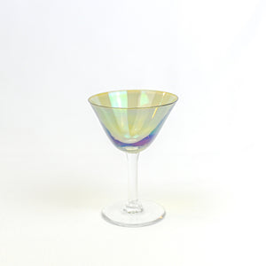 Indulge in a set of six exquisite vintage iridescent coloured glasses that exude timeless elegance. Meticulously preserved in perfect vintage condition, each glass bears no imperfections such as flea bites, scratches, or cracks. Dating back to the 1960s and originating from France, these glasses encapsulate the artistry of the era. Elevate your sipping experience with this captivating collection that combines beauty, history, and quality.