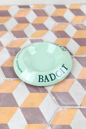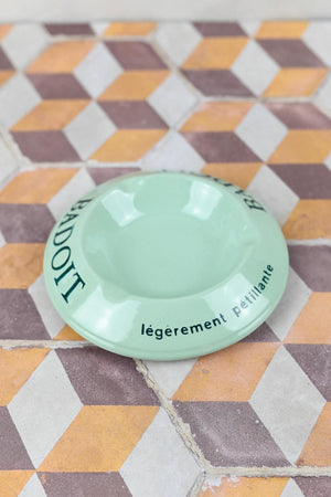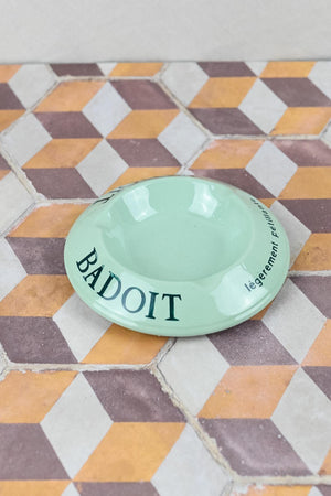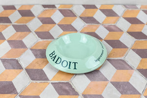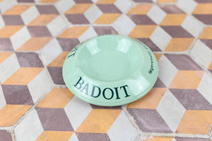 This vintage Badoit ashtray, made in France, is a charming collectible piece crafted from ceramic. It features two distinct shades of green, creating a stylish contrast that adds depth to its appearance. The ashtray showcases a classic, mid-century design with smooth curves and a glossy finish, reflecting the quality of French craftsmanship. Perfect for lovers of vintage decor or Badoit memorabilia, this ashtray not only serves its functional purpose but also acts as a nostalgic decorative item, embodying the elegance of a bygone era.