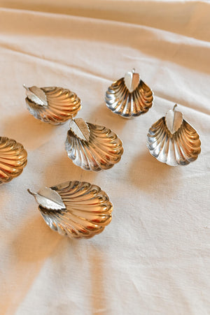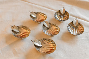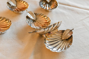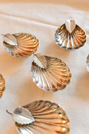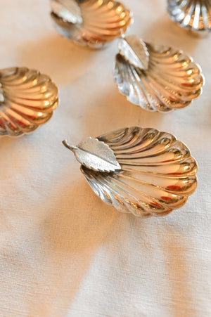 Elevate your tabletop with this charming set of six leaf/shell-shaped silver table decor pieces, signed Christmas Dior Paris. Versatile in purpose, they make a stylish addition to your aperitivo setup or serve as unique individual table ashtrays. The intricate design adds a touch of elegance to any setting, making them both functional and visually appealing. Embrace the sophistication and versatility of this silver set, enhancing your dining experience with a hint of artistic flair.