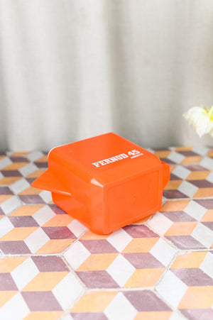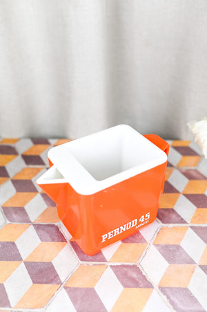 Unlike the traditional blue version, this jug is a rare orange variant, adding to its allure. Used primarily with PASTIS 51 and PERNOD 45, both anised-flavoured aperitif drinks popular since the 1950s, these jugs were a staple in bars and eateries, filled with water to accompany the aperitifs, transforming them from clear liquids to a milky hue.