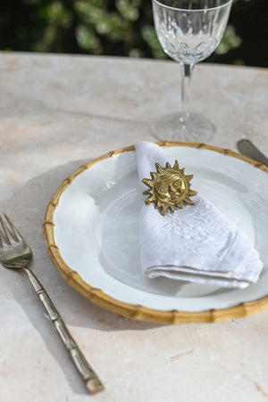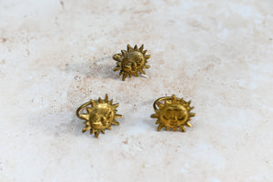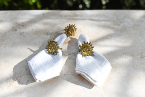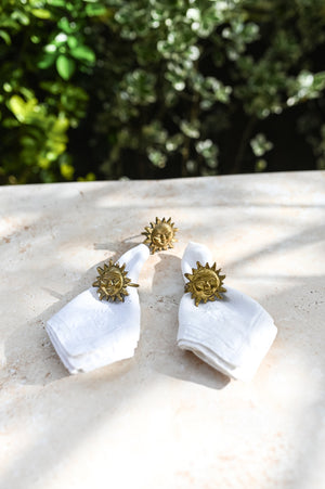 Indulge in the charm of three Vintage Brass Sun Face Napkin Rings, each exquisitely preserved to showcase its captivating patina. These timeless pieces not only add a touch of elegance but also evoke a delightful Mediterranean ambiance, elevating the aesthetics of your summer tablescape to new heights. Let these intricately crafted napkin rings be the focal point of your dining experience, inviting warmth and sophistication to every meal.