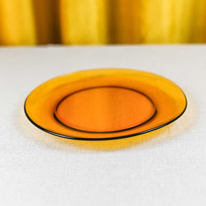 Transport your dining experience to a nostalgic era with our set of 7 amber dessert plates from Duralex, made in the 1970s. These plates are a timeless testament to both French craftsmanship and the distinctive charm of the ’70s.