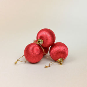 This vintage 1970s Christmas bauble made of metallic and red thread. A timeless piece that adds a touch of nostalgia and opulence to your holiday decor.