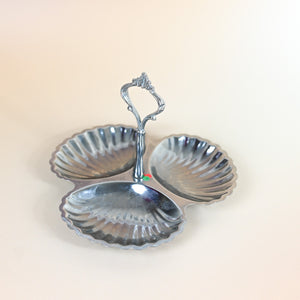 This captivating piece boasts three trays intricately designed in the shape of shells. The silver plated finish adds a touch of elegance. The dish’s handle, a work of art in itself, invites you to embrace its functional beauty. With its versatile design, this oyster shell dish is more than a piece of tableware – it’s an embodiment of memories waiting to be created. Whether it graces your table with nuts, sweets, or dried fruits, it adds an air of sophistication to every occasion. Its beauty extends beyond its functionality; it’s an invitation to celebrate life’s little indulgences in a setting that exudes elegance.