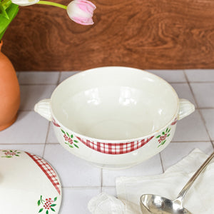 Presenting an exquisite ensemble for soup, consisting of a lid and dish, bearing the signatures of Digoin, Sarreguemines, France. This pairing is a harmonious blend of artistry and craftsmanship, reflecting the heritage and attention to detail of these renowned makers. Elevate your dining experience with this impeccable set that embodies both elegance and functionality.