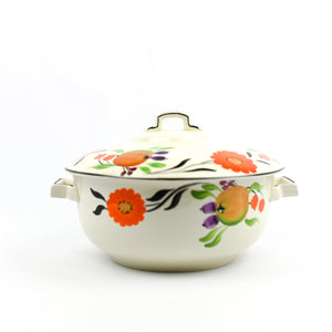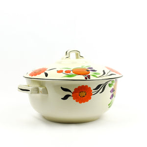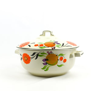 Discover culinary elegance with this captivatingly colorful soup dish, elegantly signed “Sarreguemines” & “Normandy.” Adorned with a charming floral and fruit pattern, it’s a delightful fusion of artistry and practicality for your dining experience.