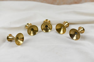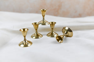Add a touch of timeless elegance to your table décor with these Five Vintage Brass Candle Holders. Crafted in France, each holder boasts intricate detailing and a warm, golden hue that beautifully complements any setting. These candle holders are perfect for creating a stunning centerpiece, whether for a formal dinner or a cozy gathering.