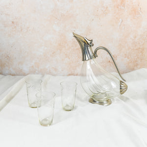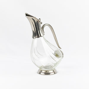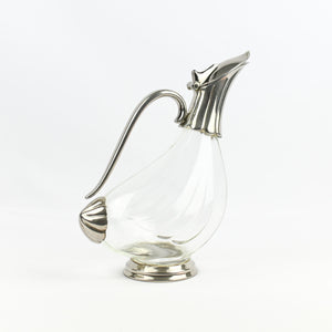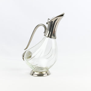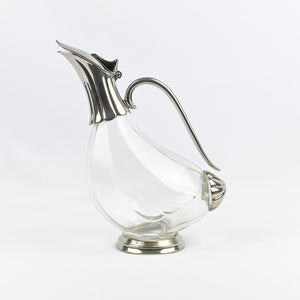 Indulge in the sophistication of an elegant silver-plated wine carafe with a crystal glass composition. This wine decanter features a traditional French duck-shaped design that harkens to the vintage mid-century charm. Preserved in very good vintage condition, it exhibits minimal signs of use or age, reflecting its quality and care. Elevate your wine experience with this exquisite piece that seamlessly merges artistry and utility.