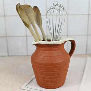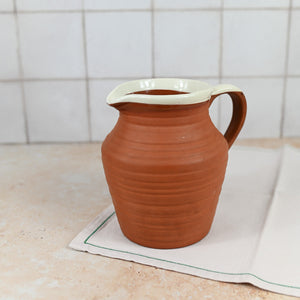 Vintage Earthenware Pitcher White Rim