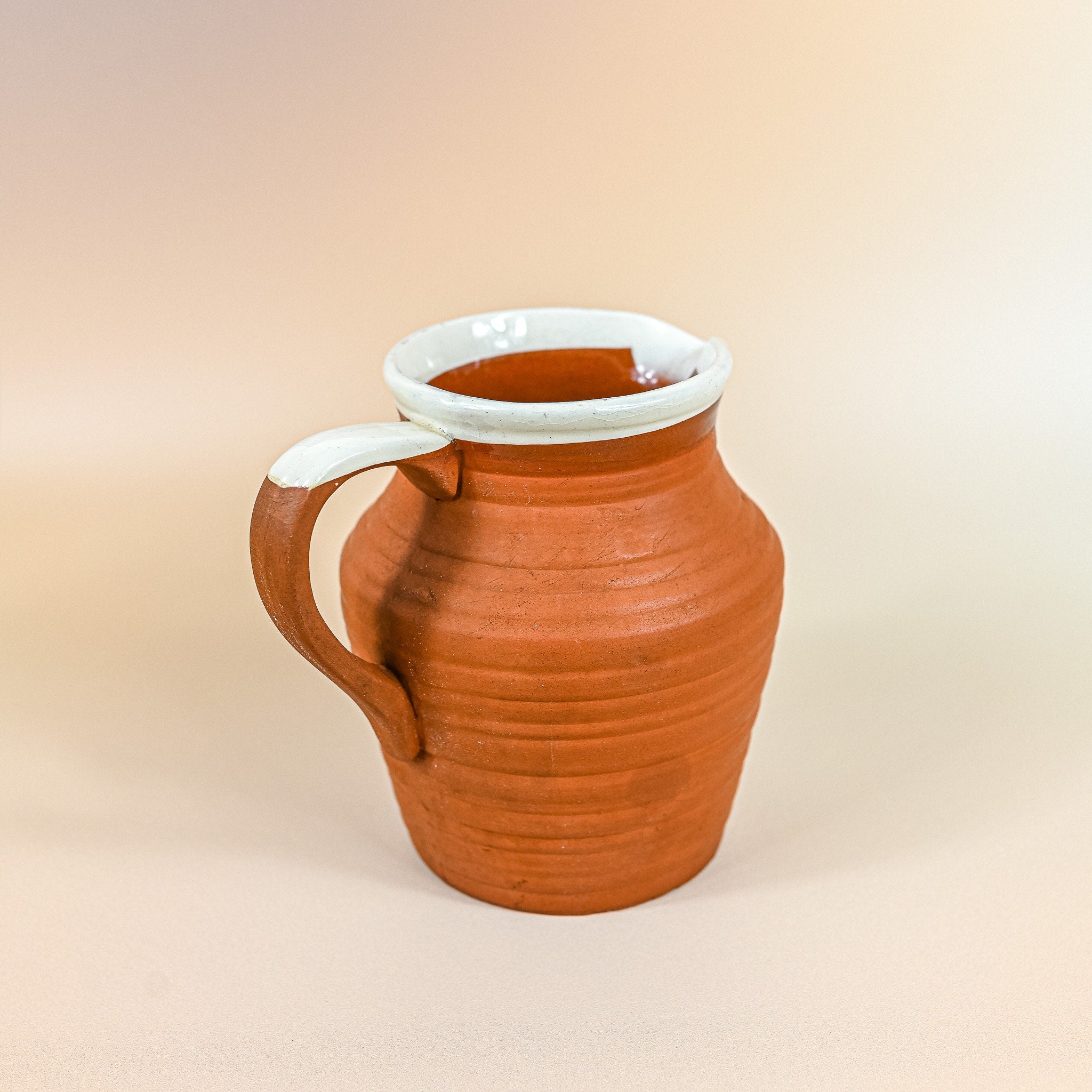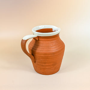 Discover rustic elegance in this exquisite earthenware pitcher with a delicate white rim. Crafted to perfection, the pitcher seamlessly marries the timeless appeal of clay with a modern touch. Handcrafted with care, the pitcher’s earthy body exudes warmth and authenticity. The gentle white rim adds a touch of refinement, creating a harmonious contrast that appeals to both traditional and contemporary sensibilities.