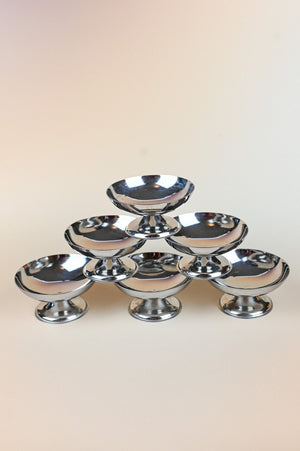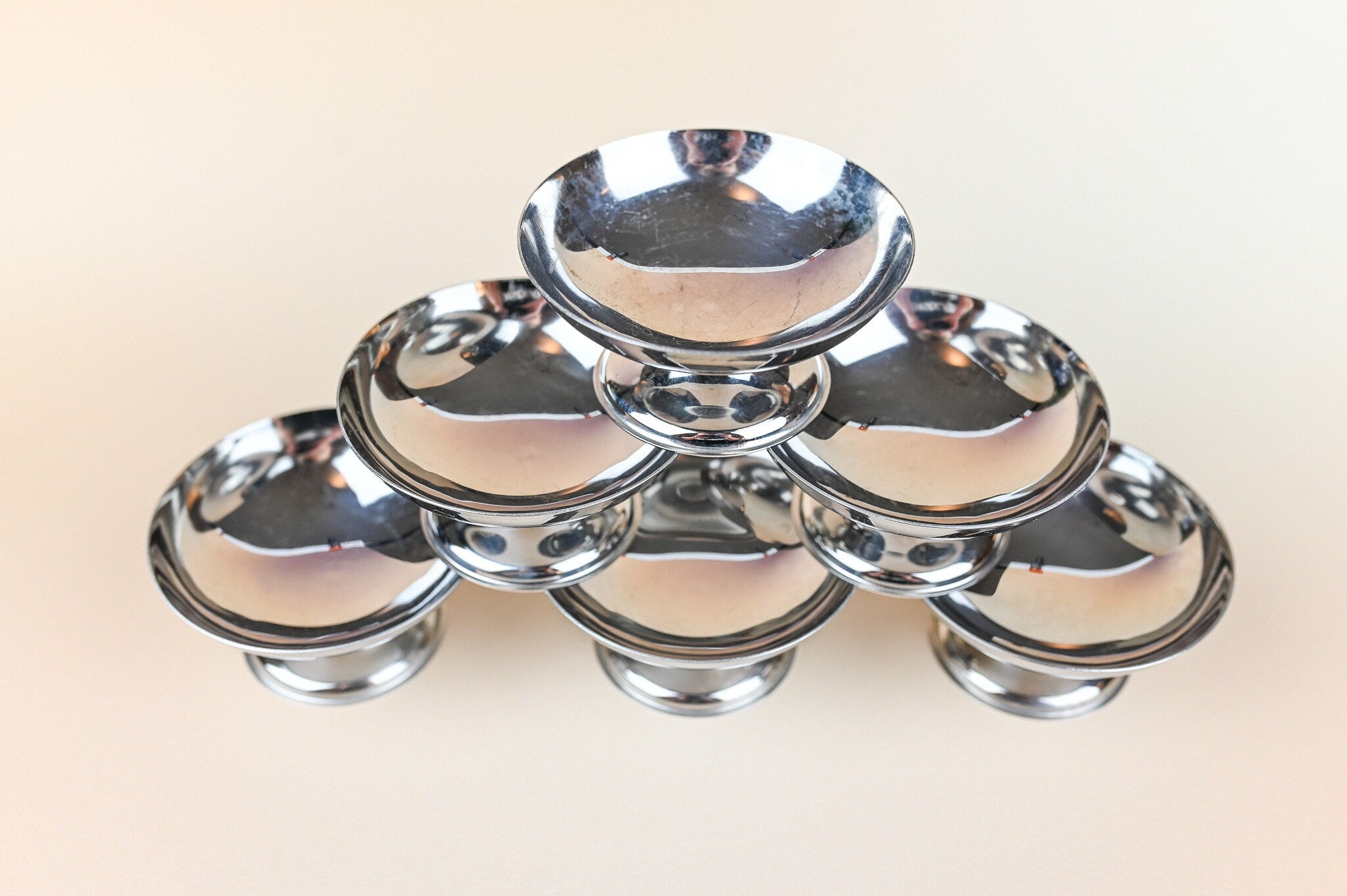 Collection of six stainless steel coupes, ideal for serving ice cream, desserts, and more. Inspired by French traditional tableware, these glasses exude Parisian style with a touch of vintage charm.