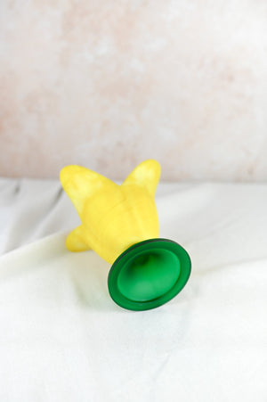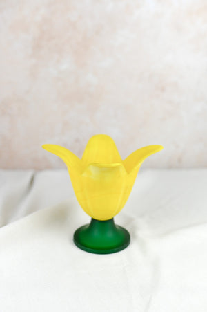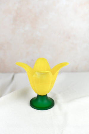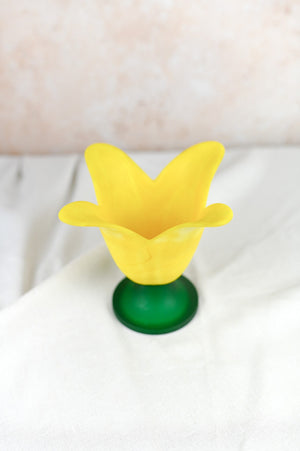 Elevate your home decor with the timeless beauty of the Vintage Studio Nova Tulip Vase. Crafted with precision in Portugal during the 1970s-1980s, this exquisite vase features a vibrant yellow tulip-shaped top complemented by a captivating green and blue glass base. The frosted glass adds an elegant touch, creating a stunning interplay of colors and textures. Display your favorite blooms or let this piece stand alone as a work of art, showcasing both its vintage allure and the artistry of its Portuguese craftsmanship. Bring a touch of nostalgia and sophistication to your space with this unique Studio Nova Tulip Vase.