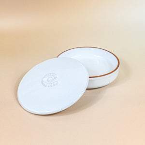 Dimensions: Lid Diameter: 16.3cm. Dish: Diameter 16cm, Height: 3.5cm.